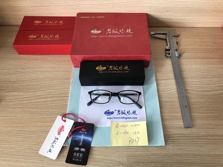 高度近视眼屈光度:(右眼:S-1550,C-100;左眼:S-1350,C-50;PD:57mm)